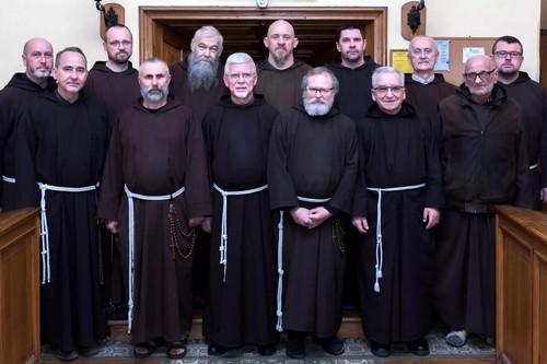 Józef Koszarny (z lewej) i br. » Roland Prejs (z prawej) w Gorzowie[1] (1997)Wspólnota Braci Mniejszych Kapucynów z Nowego Miasta nad Pilicą. Trzeci z prawej J. Koszarny[2] (2025)